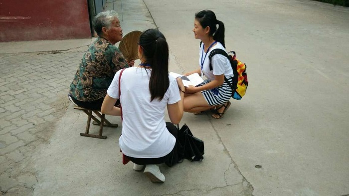 清晨,队员们在研究生刘含嫣的带领下开始了问卷调查。在表明来意后,游客们十分配合地将调查问卷认真客观的填写完整,有些游客看到队员们十分辛苦,主动要求填写问卷,活动进行的十分顺利。下午队员们就调查报告展开激烈的讨论,对调查报告结果进行了整理。随后队伍来到新合村,依据调查结果向村民们普及自媒体旅游知识并结合地理方面的专业知识为村民们解疑答惑。宣讲过程中村民们积极配合,阐述了对日照环境污染变化的看法。村民们表示地理环保知识的普及对改善雾霾天气等大气污染现象有着重要意义。