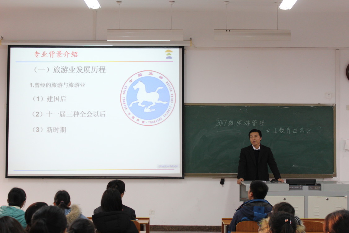 旅游管理专业加以介绍。旅游管理专业是随着我国旅游经济建设的发展、旅游产业的发育而建立的一个新型学科,我校一直致力于培养掌握旅游企业管理和服务的基本知识与技能、从事旅行社、旅游饭店等旅游行业经营管理和接待服务的管理和高级技术应用性专门人才,毕业生未来可在旅游行政管理部门、旅行社、旅游景区、旅游咨询公司、旅游电子 商务企业、旅游规划策划机构、主题公园的旅游经济管理和企业管理工作或旅游与休闲行业的自主创业等方面发展。张全景院长和吴军副院长也进行了补充和说明,他们谈到十九大提出的旅游业相关内容,让同学们了解到国家政策对于旅游业的鼓励与推动,旅游业的发展与我们的专业息息相关。在向同学们介绍澳洲女足直播
