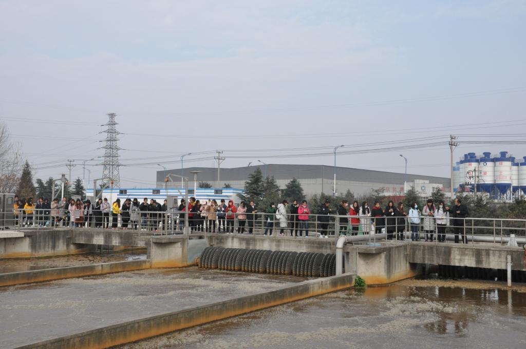 授牌仪式后,污水处理厂王强厂长详细介绍了污水处理的整个运作流程,随后,王厂长和许科长分别带学生逐级参观讲解污水处理的每个具体工艺环节。
