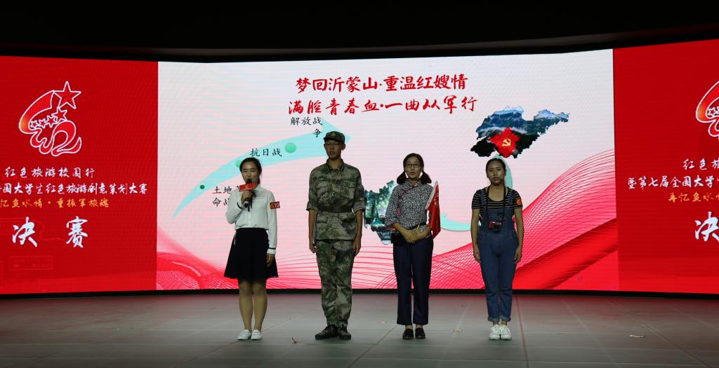 学生王芳蕾、孙威龙、彭丽荣、钟佳和周丹组成的“缘梦红旅”队进入总决赛,并展示了主题作品《走进沂蒙山,重温红嫂情》和四川采风作品《满腔青春血,一曲从军行:川陕革命根据地研学旅行课程》,获得了“再忆鱼水情,重振军旅魂”主题第五名,大赛三等奖的好成绩。同时,我校获得了大赛“最佳组织奖”,指导教师吴军副教授获得了大赛“最佳指导教师奖”。
