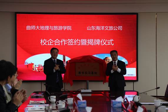 第二阶段为曲阜师范大学与山东海洋文旅公司举行校企合作签约暨揭牌仪式。上午11时左右,在山东海洋文旅公司会议室,曲阜师范大学党委常委、副校长扈庆学教授与山东海洋文化旅游发展有限公司党委书记、董事长赵东江为“曲阜师范大学教学实习基地”揭牌,澳洲女足直播