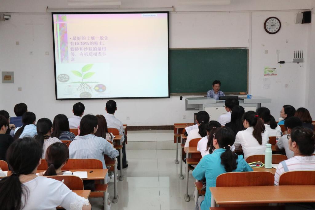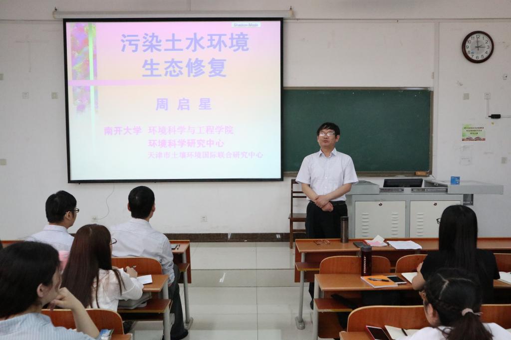 周启星教授围绕“污染土水环境生态修复”这一主题,从生态文明与生态修复、生态修复最新理论、治理进展、修复面临的挑战等方面进行了深入细致的讲解。会上,周教授强调了植物修复的作用,重点介绍现在生态修复作用的技术研发与应用,并告诉同学们植物修复具有相当可观的前景,呼吁同学们进行进一步的研究。张全景院长及荆延德教授就“植物吸收土壤中的污染物以后将怎么自身处理”、“花卉植物紫茉莉修复重金属和石油污染土壤的共性机制”等方面与周教授进行了讨论与交流。