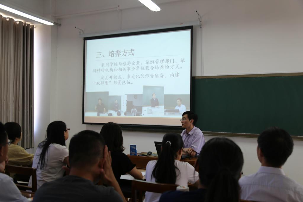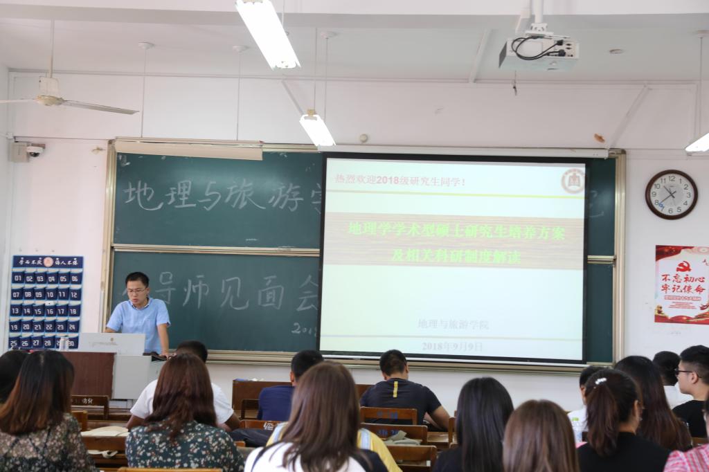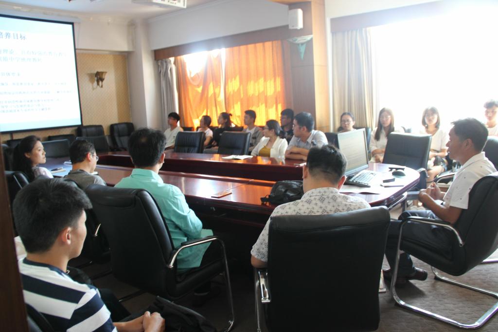 为2018级研究生新生开展了培养方案专题解读会。会议按照专业分三个方向三个地点同时进行。由吕晓副院长主持并解读的地理学和地理课程与教学论学术型硕士研究生培养方案解读会在C楼508教室进行,参加会议的老师还有院长张全景、孙晓芳、于伟、赵林、潘继花等多位老师;由吕宜平副教授主持并解读的学科教学和职业技术规划专业学位研究生培养方案解读会,地点在会馆会议室2401,参加会议的包括王猛、张家辉、刘坤、刘国栋、谭丽蓉、李俊莉、秦霞、李瑞平等导师;以及由吴军副院长解读、王宜强老师补充的旅游管理(MTA)专业学位研究生培养方案解读会,地点在教学楼S楼412教室。