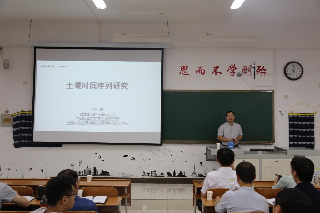 党委书记胡长春、院长张全景教授以及资源环境系、地理科学系的部分老师与张甘霖教授围绕地理学学科建设、高水平科研项目与科研平台的申报与建设等问题进行了座谈交流。