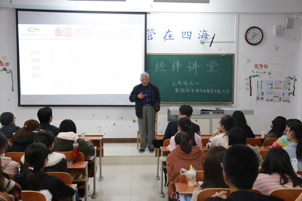 院长张全景教授主持,旅游管理系主任石峰、城乡规划系主任刘志刚、土地管理系主任刘坤,李俊莉、纪贵红、武传震、邓薇、李吉霞、闫颖、张岩君等老师与旅游管理专业本科生、研究生一起聆听了李天元教授的报告。