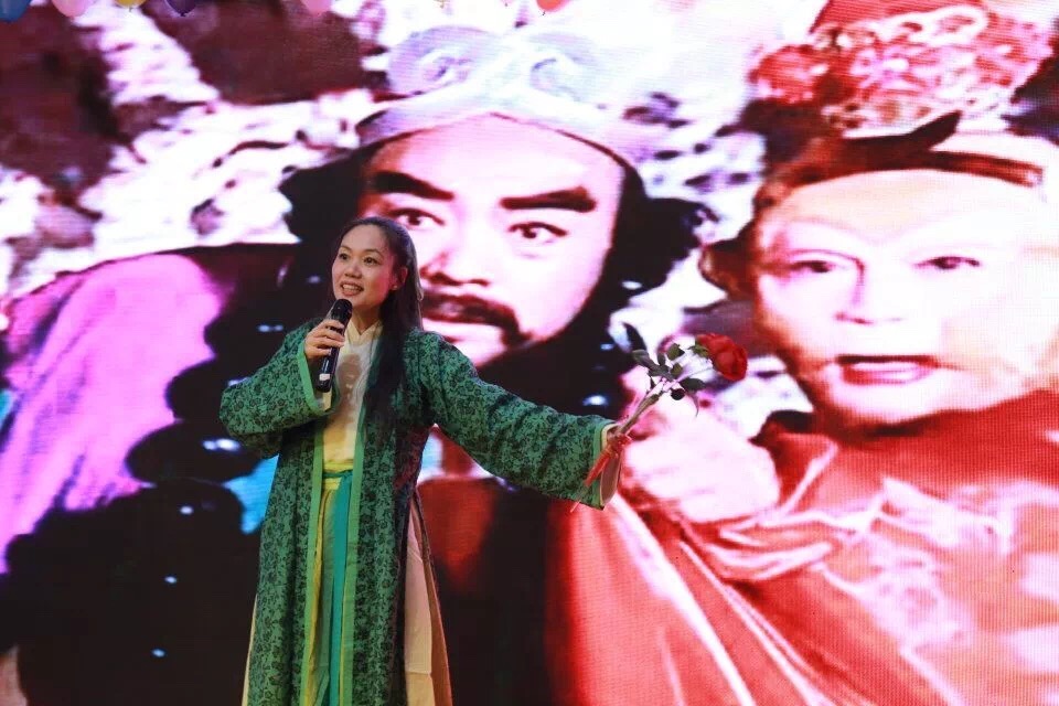 由赵岩、王萍、闫颖、孙丕苓等八位女教师表演的小合唱《让我们荡起双桨、喀秋莎》轻松愉快,创意满满;由胡书记、刘伟副书记、谭丽荣、李剑、刘飞、郭付友等老师带来的四大名著影视歌曲串烧带给大家或婉约或哀愁或豪放或磅礴的视听体验,仿佛回到了当时的年代,踏入了历史的长河,同时也向师生传达了优秀传统文化精神。