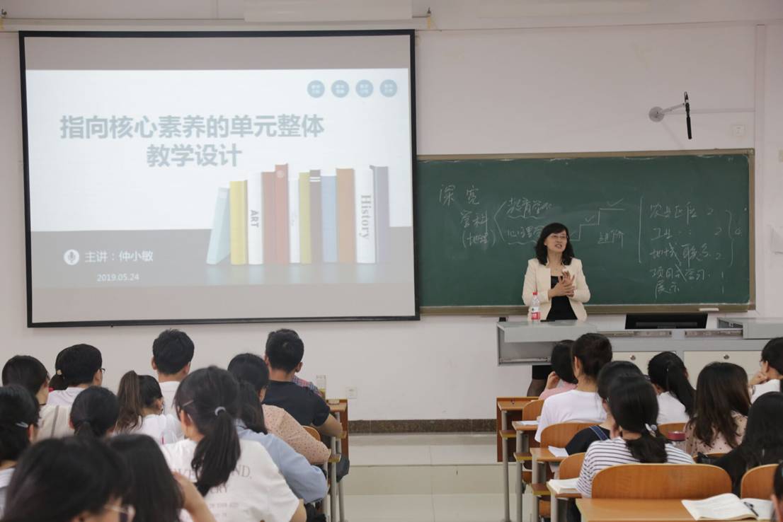 “经纬讲堂”之高端论坛——“指向核心素养的单元整体教学设计”学术报告会于JS414成功举办。天津市教学名师、天津师范大学教师教育学部副部长仲小敏教授担任主讲人。报告会由女足直播