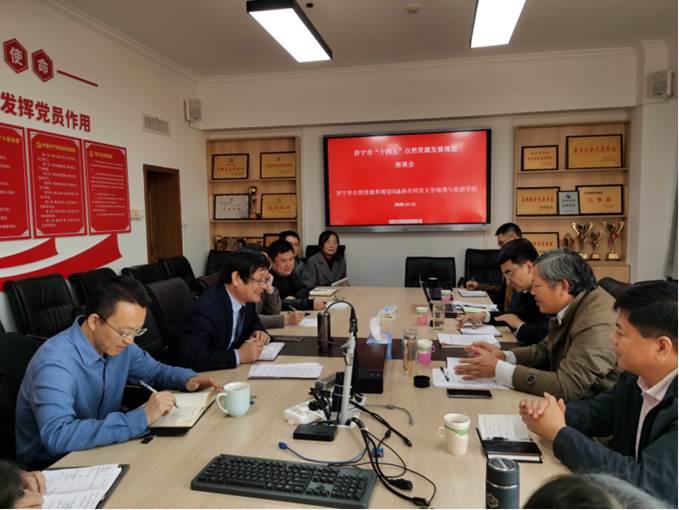 学科建设、教学与科研、团队建设与人才引进、学生培养、服务地方等方面的情况。冯延宁副局长介绍了济宁市自然资源和规划局的基本情况,然后结合济宁市的区位条件、区域特色介绍了济宁市国土空间规划、“十四五”自然资源发展规划的整体情况。李书存科长介绍了济宁市国土空间规划的编制进度,提出需建立健全国土空间规划体系。李海斌科长具体介绍了济宁市自然资源“十四五”规划要求和思路。王广民科长结合山水林田湖草生命共同体的生态保护修复情况,介绍了济宁市林业发展情况以及林草资源(野生动植物资源)发展规划情况。