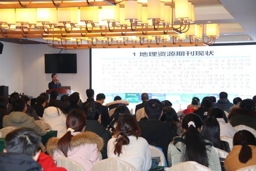 发展历程、学科优势与特色以及近年取得的主要科研成果,中国地理学会副秘书长、中国地理学会编辑出版工作委员会副主任、《地理学报》专职副主编兼《地理学报》《中英文)编辑部主任何书金研究员做了《地理资源期刊组织策划选题及效果》的主旨报告。何书金系统阐述了中国地理资源期刊的现状和影响力,提出了引领学科发展的“三个追踪”和“三个关注”办刊理念。论坛设两个分会场,共有14位青年教师进行了论文、课题申报汇报。专家们从文章与基金选题、科学问题凝炼、研究方法选择、格式规范等方面进行了全面指导,拓展了青年教师、研究生研究视野,提升了研究立意。《地理科学》执行主编佟连军研究员为青年教师讲解了国家自然科学基金选题、论证、成果录入中需要注意的问题,建议大家做好时间规划,循序渐进推进论证工作。
