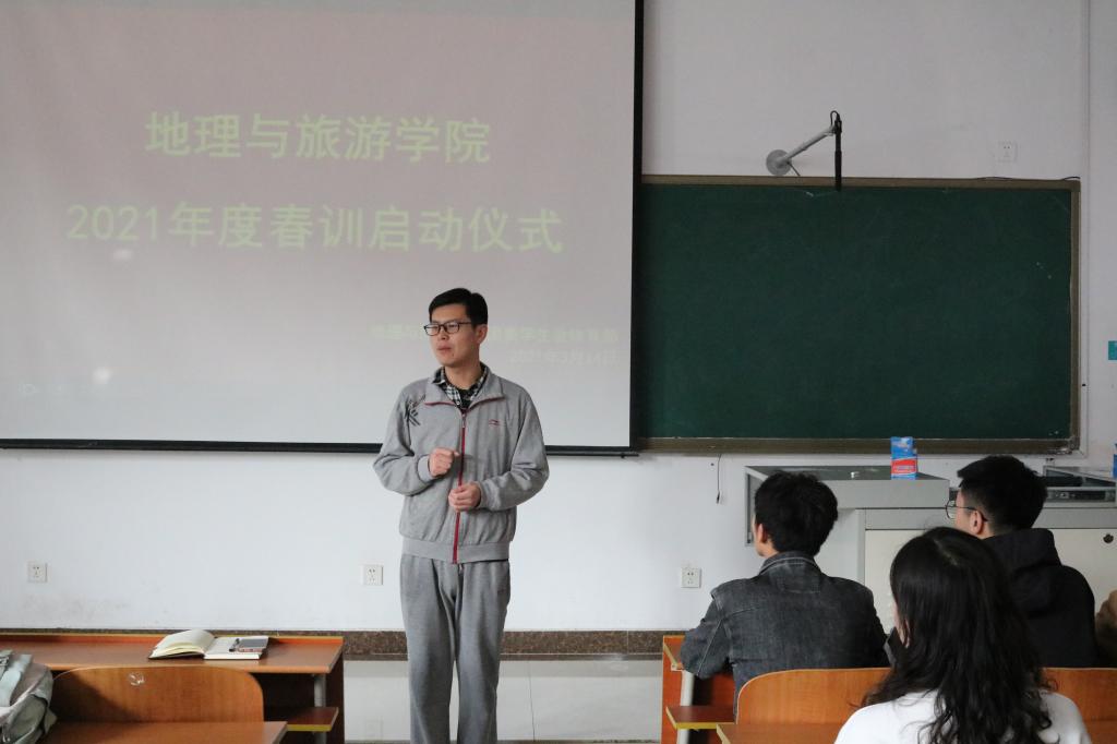 于S314举行2021年度春训启动仪式。2020级辅导员田青,教练员陈文龙、郑喆以及2019级和2020级学生代表参加。