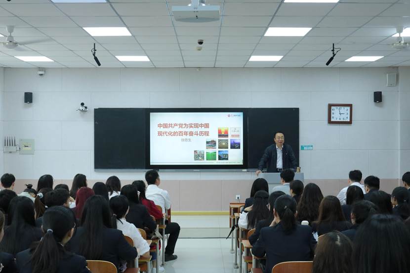 课程中,徐思生书记阐释了走有中国特色的“新路”,向全面现代化进军。他指出,中国特色社会主义进入了新时代,在习近平总书记的率领下,全党全国各族人民以实现社会主义现代化和中华民族伟大复兴为己任,在现代化征程上跑出“加速度”,中华民族迎来了从站起来、富起来到强起来的伟大飞跃。他号召广大学子,要努力成长,在全面建设社会主义现代化国家新征程中接好接力棒,砥砺前行,成就辉煌中国,接续奋斗,绘就美好前景。