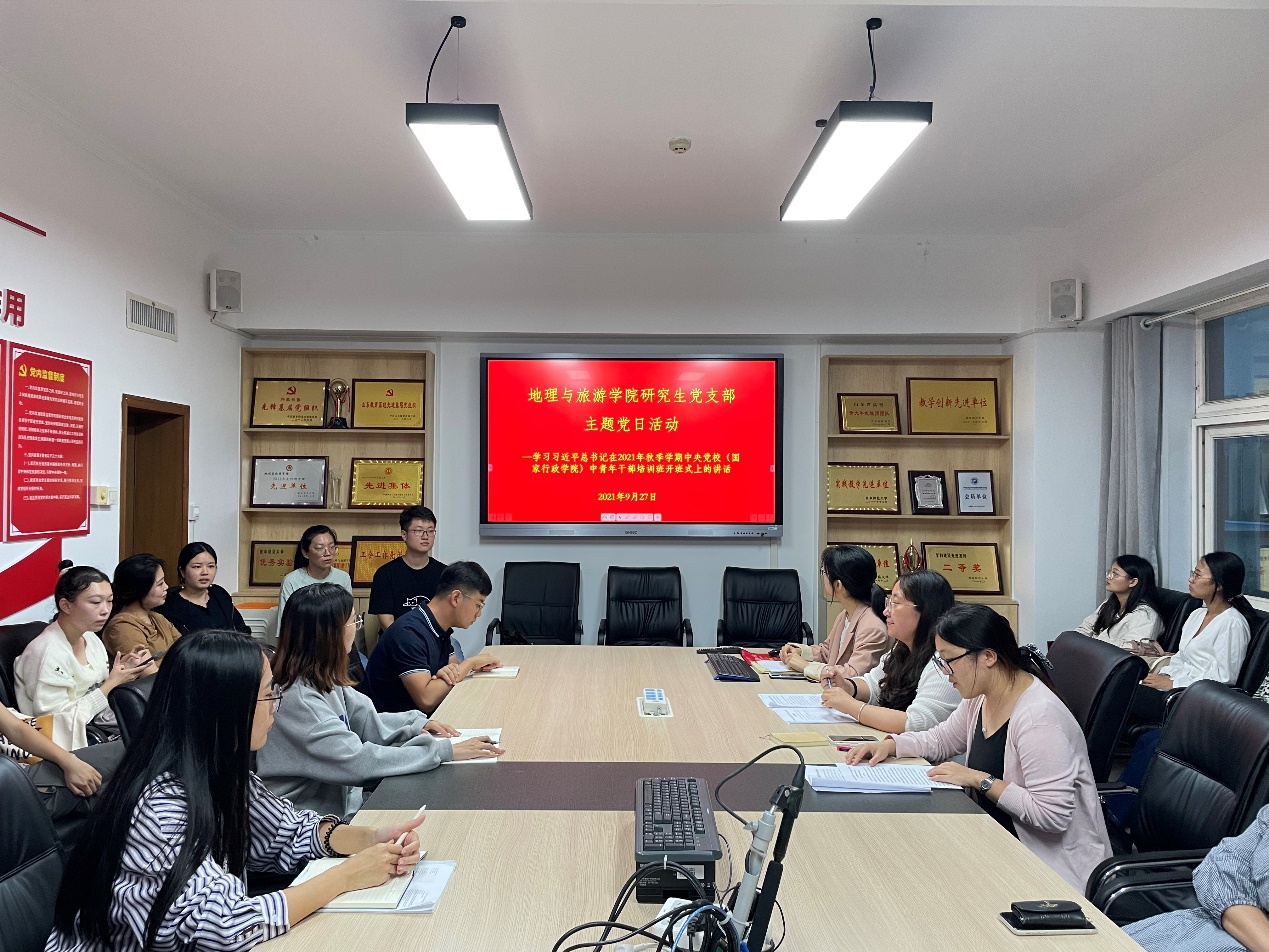 研究生党支部组织全体党员在会馆2401会议室开展主题党日活动,集体学习贯彻习近平总书记的重要讲话精神。会议由党支部组织委员马振秀主持,全体党员参加。