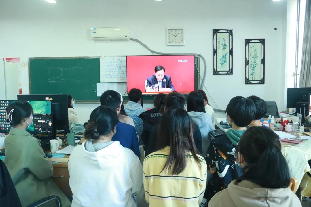 党委副书记刘伟、党支部书记田青、纪检委员董青、组织委员张乃宁及支部全体党员参与观看。