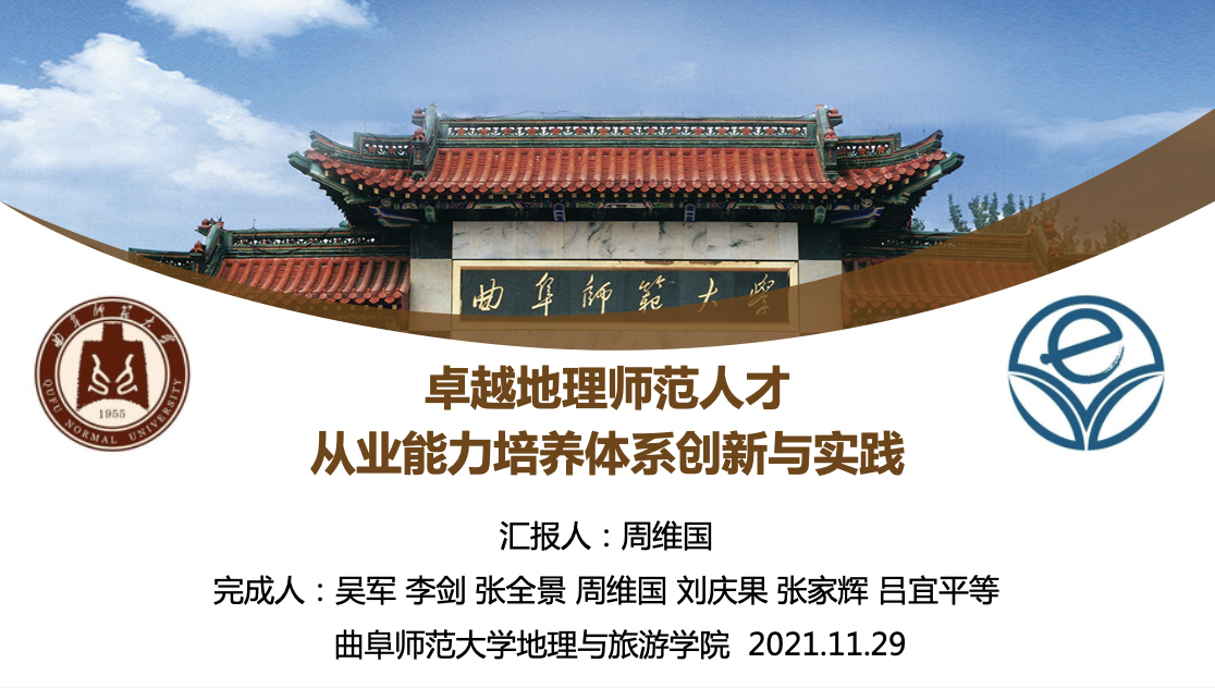 周维国老师受邀参加年会高师论坛,并作了题为《卓越地理教师人才从业能力培养体系创新与实践》的教学成果汇报,点评嘉宾首都师范大学林培英教授、内蒙古师范大学徐宝芳教授对这一教学改革成果给予了肯定与好评。