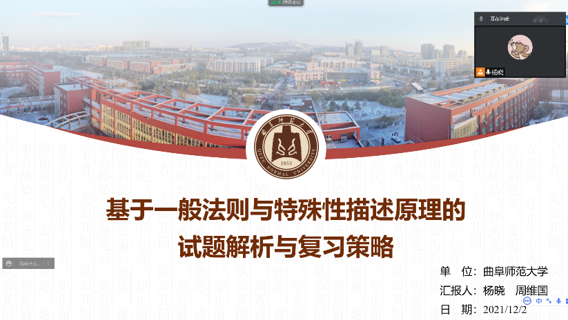 硕士研究生杨晓展示交流了题为《基于一般法则和特殊描述原理的试题解析与复习策略》的学术成果;本科生张新宇线上展示了《世界表层洋流的分布规律》的授课过程;本科生王世清线上展示了《大气的受热过程》的授课过程; 硕士研究生王一山线上展示了《潮汐》的授课过程;硕士研究生刘英杰线上展示了《中国固有领土——钓鱼岛》的授课过程。