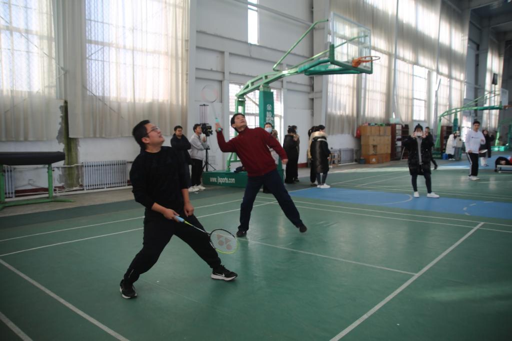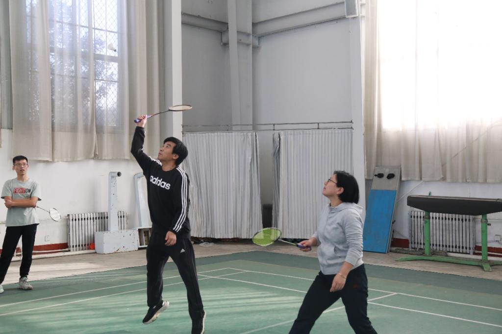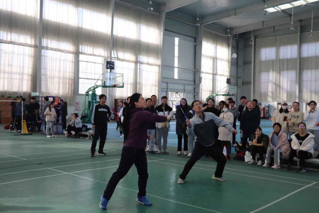 参赛师生按各系(部门)组队,分成三个小组进行小组循环赛,其中每场比赛由男双、女双、混双三个项目组成。老师同学们互相鼓励,赛场氛围融洽。赛场上,师生们活力四射的,表现出奋勇拼搏的竞技精神与精诚团结的协作精神,他们球技娴熟、扣杀精妙,一个个精彩的回球为在场观众带来视觉与心灵的冲击,赢得了现场观众的阵阵喝彩。经过一上午激烈的小组赛比拼,角逐出了各小组的一、二、三名,进入排名赛。