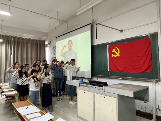 研究生党支部组织新发展的预备党员举行入党宣誓仪式。