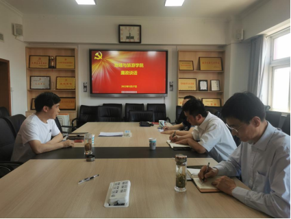 党委书记苏占兵与三位副处级干部刘伟、吴军、于伟在会馆2401会议室进行廉政谈话。