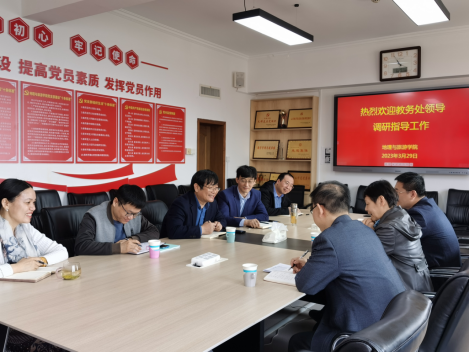 院长张全景、副院长吴军、地理科学系副主任周维国、地理教学论教师李剑、刘庆果参加调研座谈会,院长张全景主持会议。