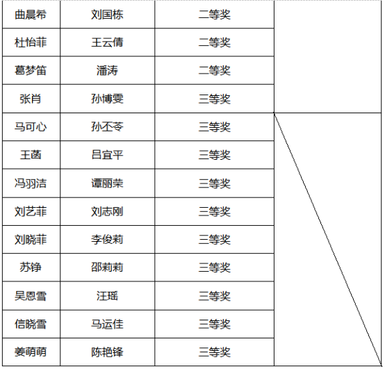 获奖名单(同一等级按照选手姓氏笔画排序)