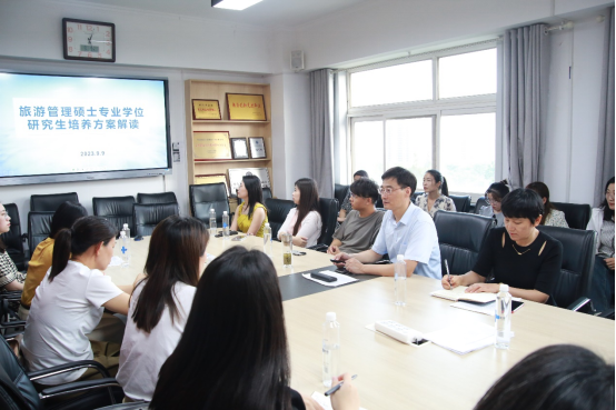 召开2023级旅游管理(MTA)专业硕士培养方案解读会,全体2023级MTA研究生参加解读会。副院长兼MTA教育中心常务副主任吴军教授对培养方案进行了详细解读。