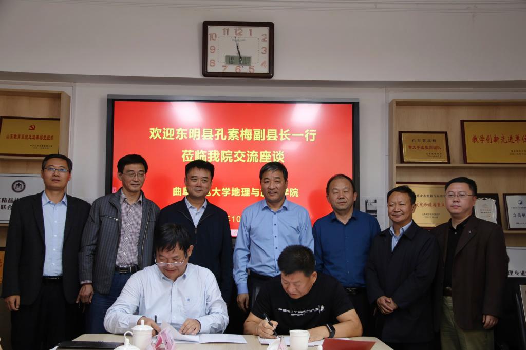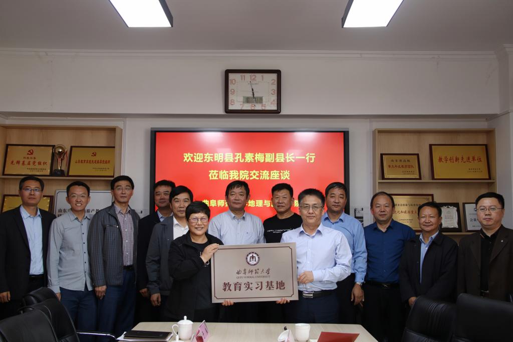 和东明一中校长张洪洲签署了教育实习基地合作协议书。胡凡刚副校长向东明一中授教育实习基地牌。