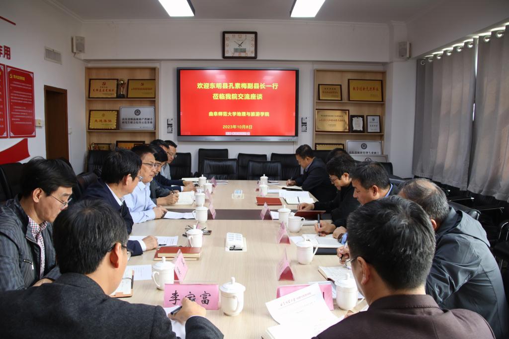 座谈会上,胡凡刚副校长详细介绍了曲阜师范大学的发展历程、办学规模、办学条件,并重点就学校在人才培养、学科建设、科学研究、社会服务等方面取得的成绩做了介绍。胡校长指出,学校的发展得益于上级领导的关心关怀,得益于全体师生的勠力同心,奋发有为,得益于社会各界的支持关注,对东明县教体局、东明县一中给予的支持和配合表示感谢。