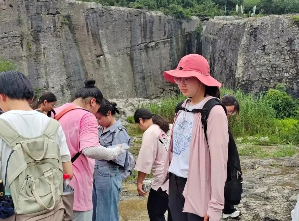 7月3日,同学们前往大石碑、水魔方、汤山矿坑公园,刘飞从大石碑地层、石碑化石两方面进行讲解,他强调:地层中的构造可以从宏观与微观两方面进行考量,宏观上的断层构造、褶皱山系发育,微观上的石灰岩构造以及石灰岩地貌的发育流程需要同学们认真观察总结。刘艳老师则着重讲解了水魔方的生物入侵现象和汤山地区矿山生态修复措施和现状。