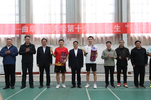 取得一等奖的好成绩! 赛毕,学校对本次羽毛球赛给予了高度的评价与鼓励,学校领导对获奖队伍颁发了奖杯并合影留念。
