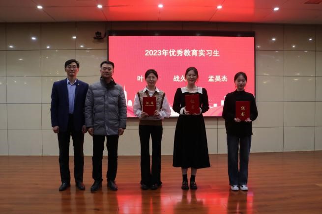 对2023年教育实习表现优秀的同学进行了表彰。叶繁、战久宁、孟昊杰、朱子青四位同学获女足直播