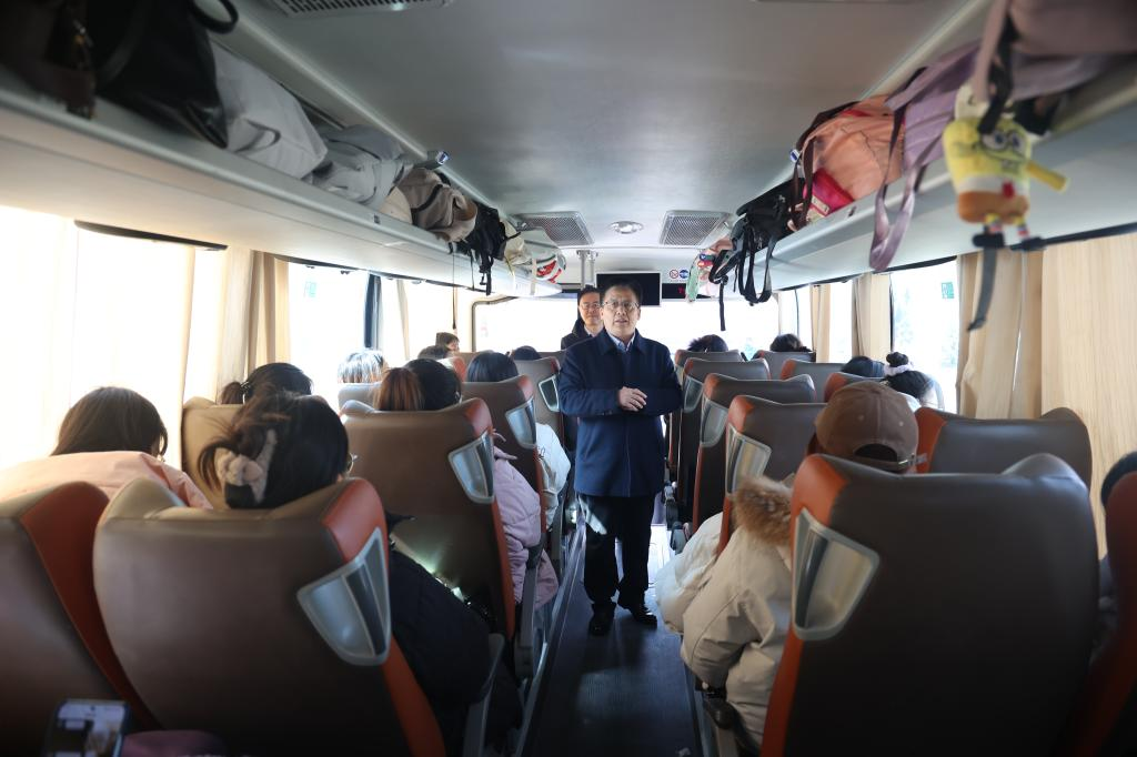 副院长吴军、辅导员田青、指导教师于深洋、汪瑶送支教实习生