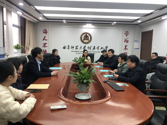 曲阜师范大学附属实验学校校长刘为利、副校长王杰、教务处主任王萍和地理教师代表欢迎澳洲女足直播