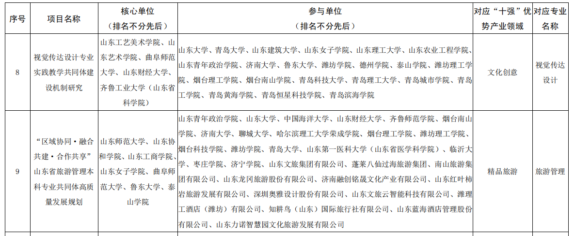 根据《山东省教育厅关于组织开展2023年山东省普通本科高校重点领域教学改革试点项目建设工作的通知》(鲁教高函〔2023〕36号)文件,联合申报核心单位不分先后,均视同为第一完成单位;同时,省教育厅将对立项支持的“111”计划项目按本科教学改革研究项目重大专项进行管理,并给予一定经费支持。