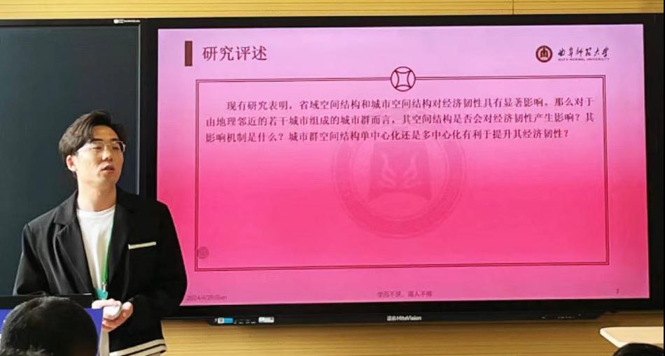 青年教师郭付友副教授、孙丕苓副教授、樊立惠博士等教师及部分硕士生参加了2024年中国地理学会春季年会暨中国地理编辑出版年会。会上,张学波教授作为召集人和点评专家参加了分论坛“不确定语境下区域经济韧性与产业动态研究”的交流,并做了“关联视角下区域韧性演化与形成机制研究框架”的学术报告。硕士生何志浩、卢冰坤、李楠、李娴分别做了“中国城市群空间结构对经济韧性的影响研究”“中国城市技术韧性时空演化与影响因素研究”“黄河流域土地利用强度变化对生态系统服务的影响”“青藏高原可持续发展目标的时空变化和影响因素”的学术报告。