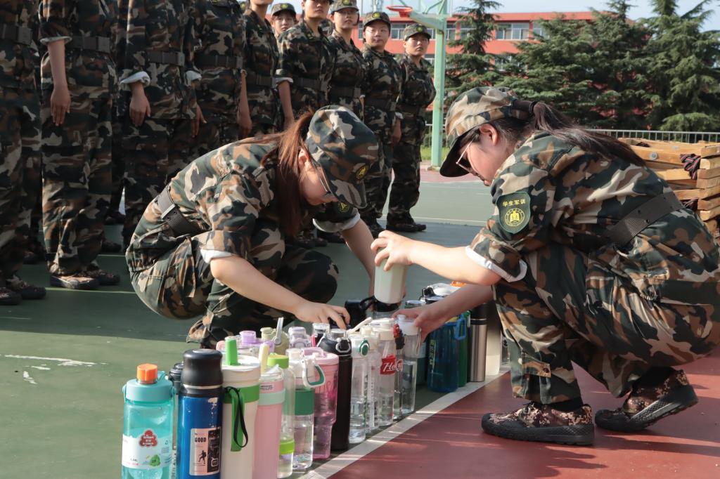 同学自发将军训水杯摆放整齐