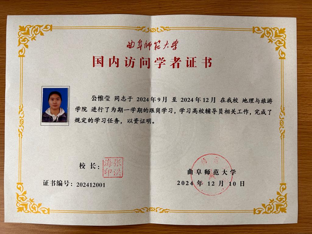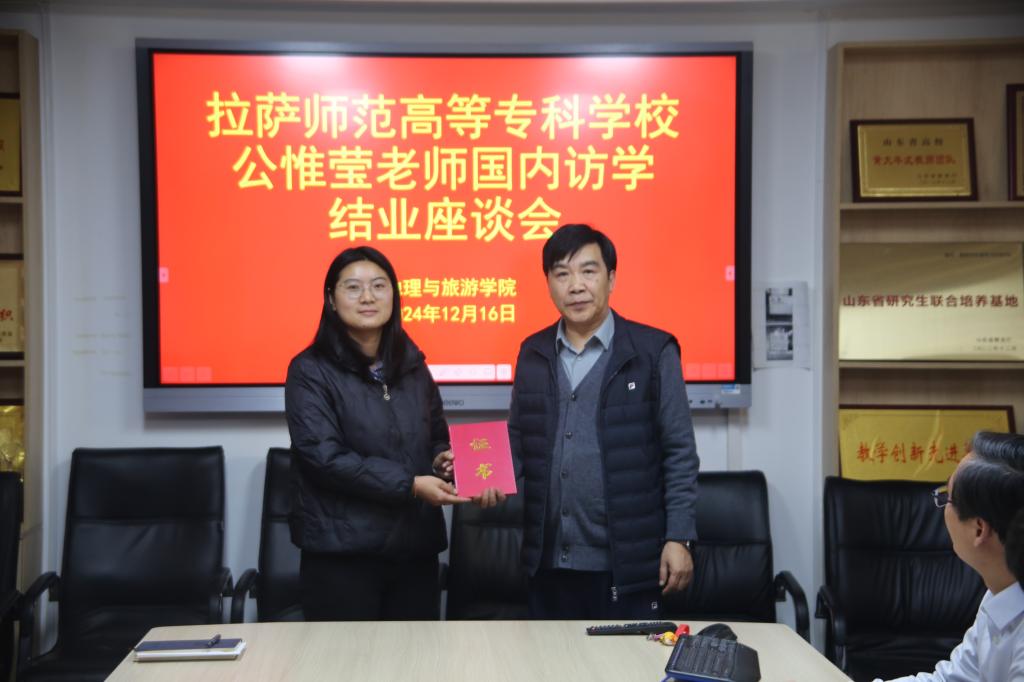 领导和老师们都分别就公惟莹老师在曲园访学期间的表现予以充分的肯定。公惟莹汇报了自己访学的收获和体会,深情表达了对曲阜师范大学和地理与旅游女足直播