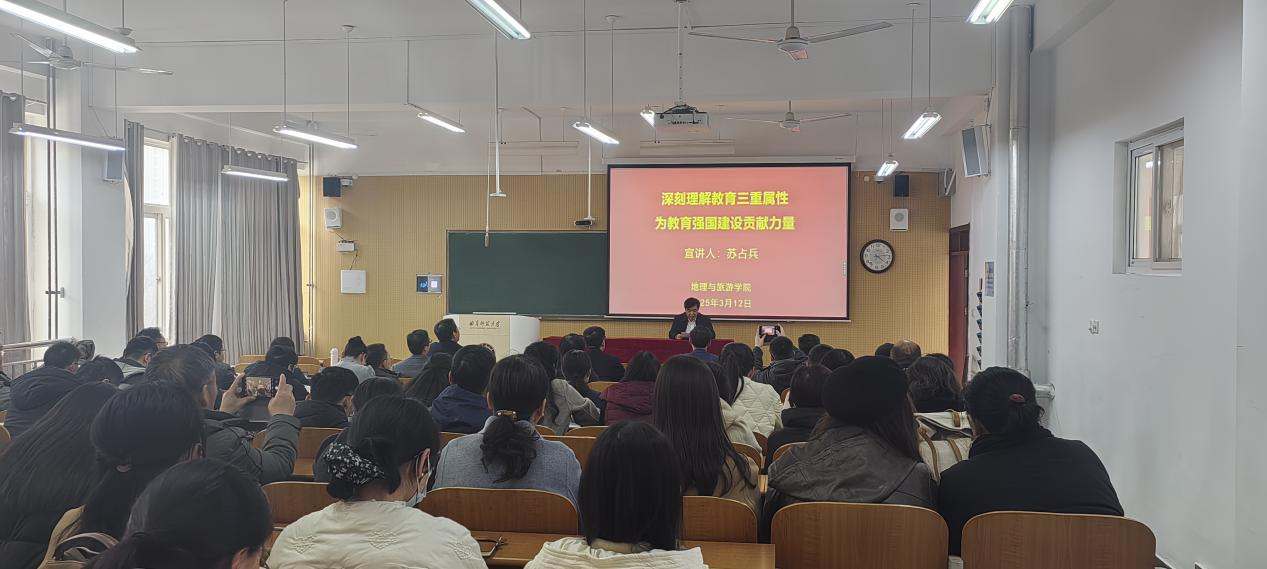 党委书记苏占兵以《深刻理解教育三重属性,为教育强国建设贡献力量》为题为全体教师上了一堂形势政策课。