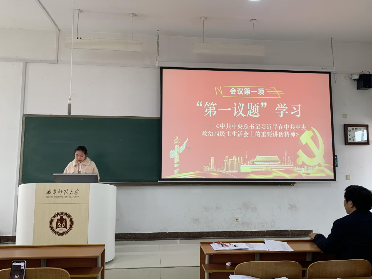 根据会议议程,首先由徐佳蓓同志带领与会党员开展第一议题学习,深入学习领会习近平总书记在中共中央政治局民主生活会上的重要讲话精神。习近平总书记指出,这次中央政治局民主生活会开得很有成效,达到了交流思想、检视问题、明确方向的目的,有利于中央政治局增进团结、改进工作、担当使命。习近平总书记还在会上强调了党纪教育的重要性,要推动党员干部自觉忠诚干净担当,严格执行和维护党的纪律。通过第一议题的学习,为本次民主生活会的顺利开展提供了有益指导和思想基础。