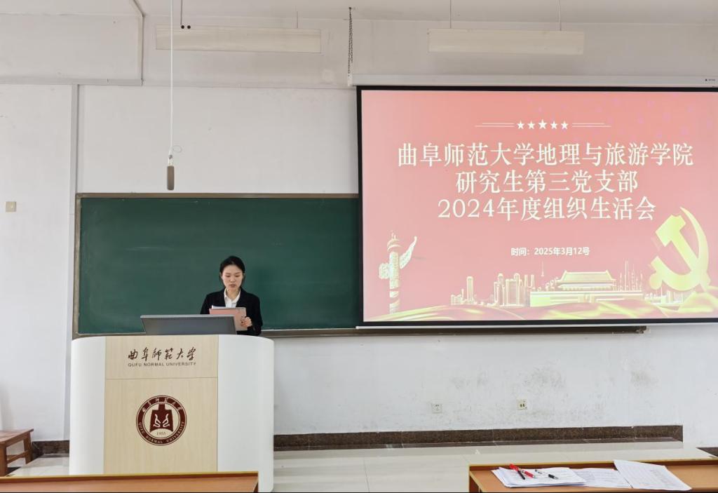 会议回顾过往,报告工作成果。支部书记李雅洁对党支部自身建设情况、党员教育管理、发展党员工作、党纪教育学习开展等方面工作的具体情况进行了全面复盘,并结合实际工作深入剖析存在的问题,明确下一步改进方向和工作思路。过去一年,本支部学生在地理学科竞赛中共获得国家级奖项十余项、省部级奖项十余项,在2024年全国“田家炳杯”全日制教育硕士专业学位研究生学科教学(地理)教学技能大赛中,支部五位同志进入决赛并全部获奖,党员先锋模范作用凸显,推进学习型、规范型、创新型、服务型、领航型的“五型”党支部建设取得新进展。本年度支部共培养入党积极分子17名,发展预备党员3名,为党组织注入了新鲜血液,进一步壮大了党员队伍。支部根据学校党委要求开展党纪学习教育工作,深入学习贯彻修订后的《中国共产党纪律处分条例》,依托“三会一课”和主题党日,采取线上和线下相结合、自学和集中学习相结合的方式,扎实认真开展学习。