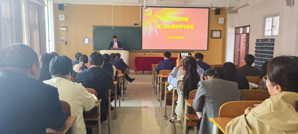在S楼314教室召开教工政治理论学习会议,会议由党委书记苏占兵主持。