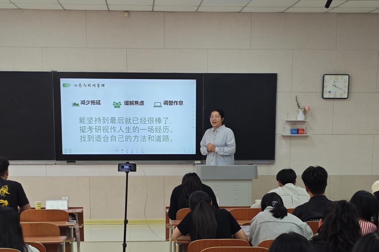 516日,召开地图学与地理信息系统、跨专业专场,邀请袁雨霞、刘宁、石鑫红进行经验分享,他们强调同学们在复习时要回归课本大纲,透彻解读相关参考书目,夯实基础知识,及时整理章节框架;生态学与环境地理学专场邀请陈佳艺、邵明阳、王天乐进行经验分享,他们结合备考时的身心感受,分享缓解压力的方法;在自然地理学专场中,王玉茹、张广宇、王怡霏、孙金玉应邀进行经验分享,他们提醒大家提前抵达目标院校熟悉适应环境,通过模拟面试等方式优化临场表现,要注重简历的精准性与本科阶段科研实践成果的展示。