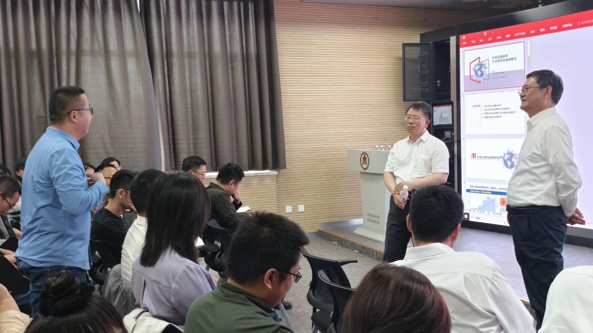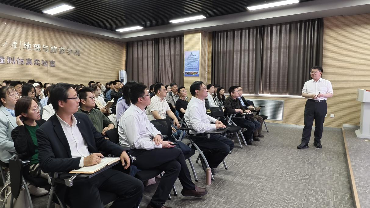 报告会后,贺灿飞教授教授主持了地理学“人文地理学”和“土地利用管理”方向的研究生论文答辩,对学科建设、一流专业和一流课程建设进行了指导。