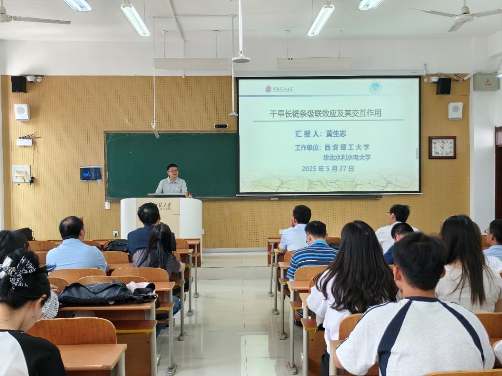 黄生志教授针对“干旱长链条传递特征与模式是什么?变化环境下如何演变?”“前期土壤湿度与变绿如何影响干旱的级联传递过程?”“农业干旱对气象干旱的反馈大小与负正反馈的转换阈值?”以及“气象与农业干旱的交互作用及其对植被的影响有多大?”等关键科学问题及其最新研究成果进行系统阐释。黄教授的报告紧密结合气候水文学领域学科前沿热点,精彩生动。在互动讨论环节,与会师生与黄教授展开深入交流,黄教授进行了深入浅出的细致解答。