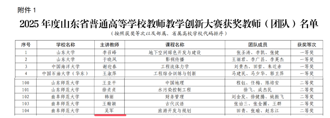 近日,山东省教育厅公布2025年度山东省普通高等学校教师教学创新大赛获奖名单,女足直播