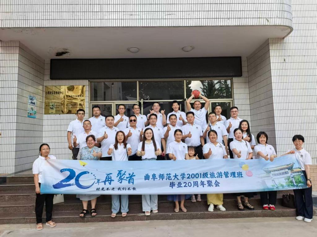 2025年7月27日,盛夏七月,杏坛情深。曲阜师范大学2001级首届旅游管理专业30余名校友从五湖四海重返母校,共赴毕业二十周年之约。本次聚会以“廿载同窗情,再聚阙里缘”为主题,通过师生座谈、校园重游等活动重温青春记忆,共叙师生情谊,见证母校发展。