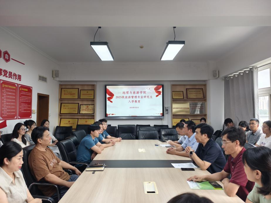 党委书记苏占兵、副书记刘伟、副院长吴军、副院长于伟、研究生辅导员赵岩及2025级旅游管理专业全体研究生参会。