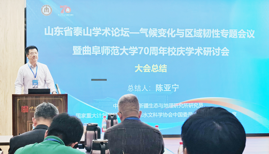 新疆生态与地理研究所陈亚宁研究员对论坛作总结。陈亚宁表示,本次论坛层次高、视野广,展现了学术前沿的磅礴气象,专家学者交流深、碰撞多,激发了创新思维的灿烂火花,组织佳、氛围好,构建了携手共进的学术共同体。陈亚宁向全体与会同仁、向本次论坛的承办方表示衷心的感谢,对曲阜师范大学70周年校庆及泰山学术论坛的圆满召开表示热烈的祝贺。闭幕式由澳洲女足直播