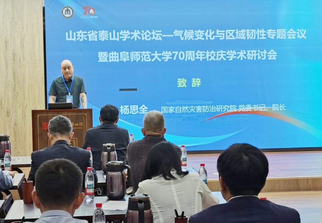 科技部重点研发计划首席科学家、应急管理部国家自然灾害防治研究院党委书记、院长杨思全向论坛致辞。杨思全表示,世界科技革命和产业变革正在深度演进,知识创新速度前所未有,学科交叉融合是大势所趋。论坛主题“气候变化与区域韧性”体现了这一趋势和地理学的综合性特征,期待以此次论坛为纽带,进一步强化与曲阜师范大学及各参会院校、科研院所的合作,共同为推动我国气候变化应对及区域韧性高质量发展贡献智慧与力量。