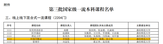近日,教育部发布《关于公布第三批国家级一流本科课程认定结果的通知》(教高函〔2025〕9号),其中,张全景教授团队主持的《农村土地利用与政策创新》和李俊莉教授团队主持的《环境学概论》课程获评为国家级一流本科课程。
