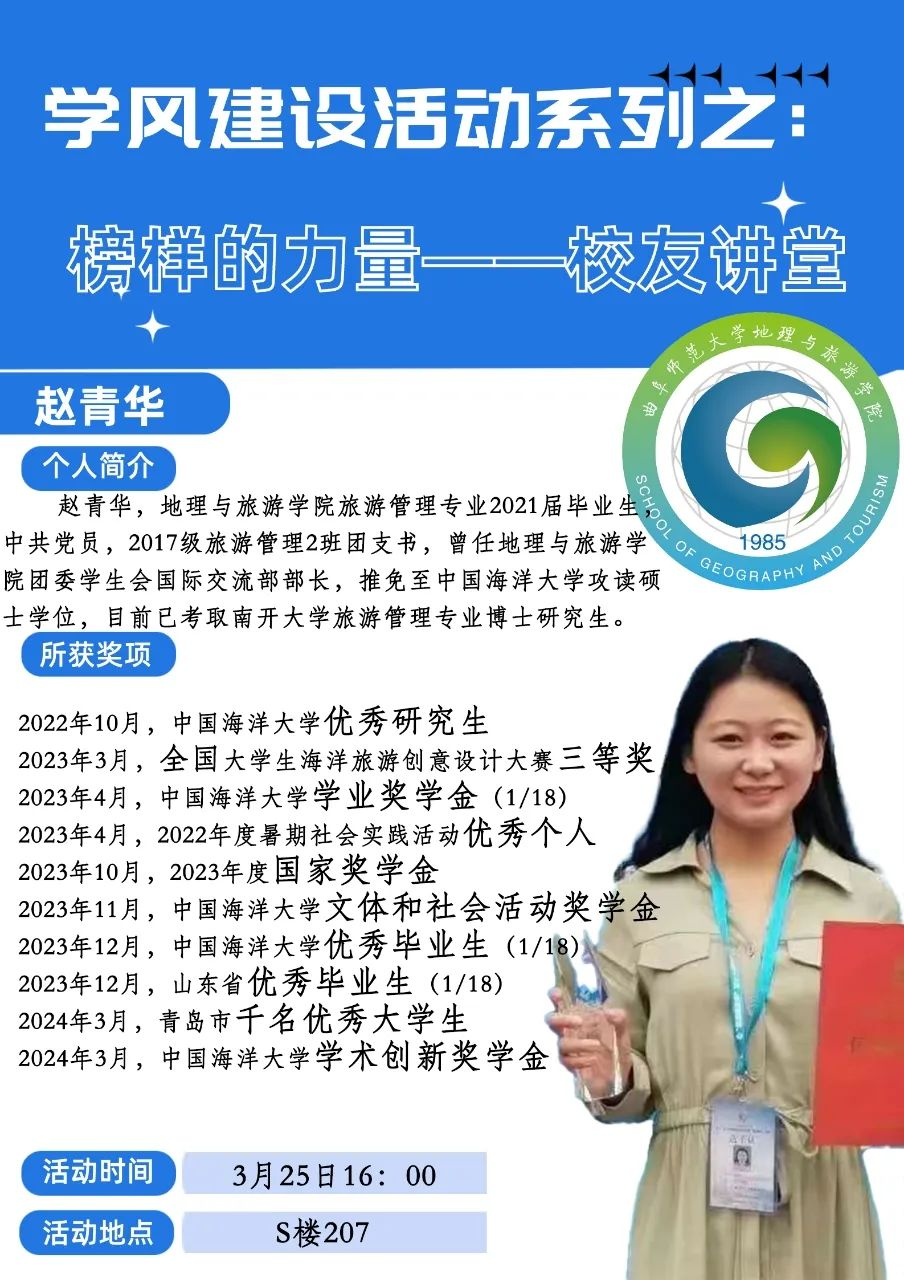 2017级旅游管理专业优秀毕业生、保研中国海洋大学并已顺利考取南开大学博士研究生的赵青华主讲,女足直播